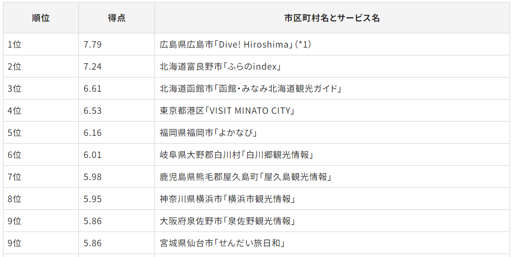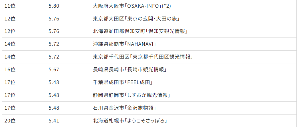 「Gomez 観光情報サイトリライアビリティランキング2023」の市区町村情報追加発表について
