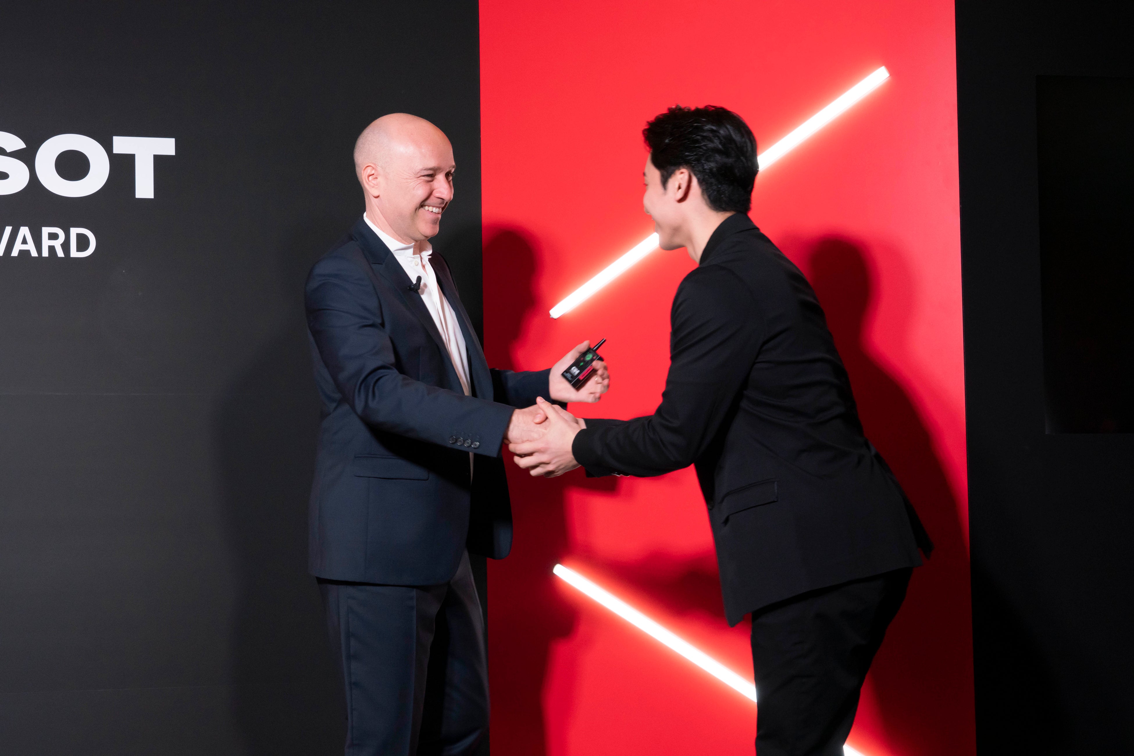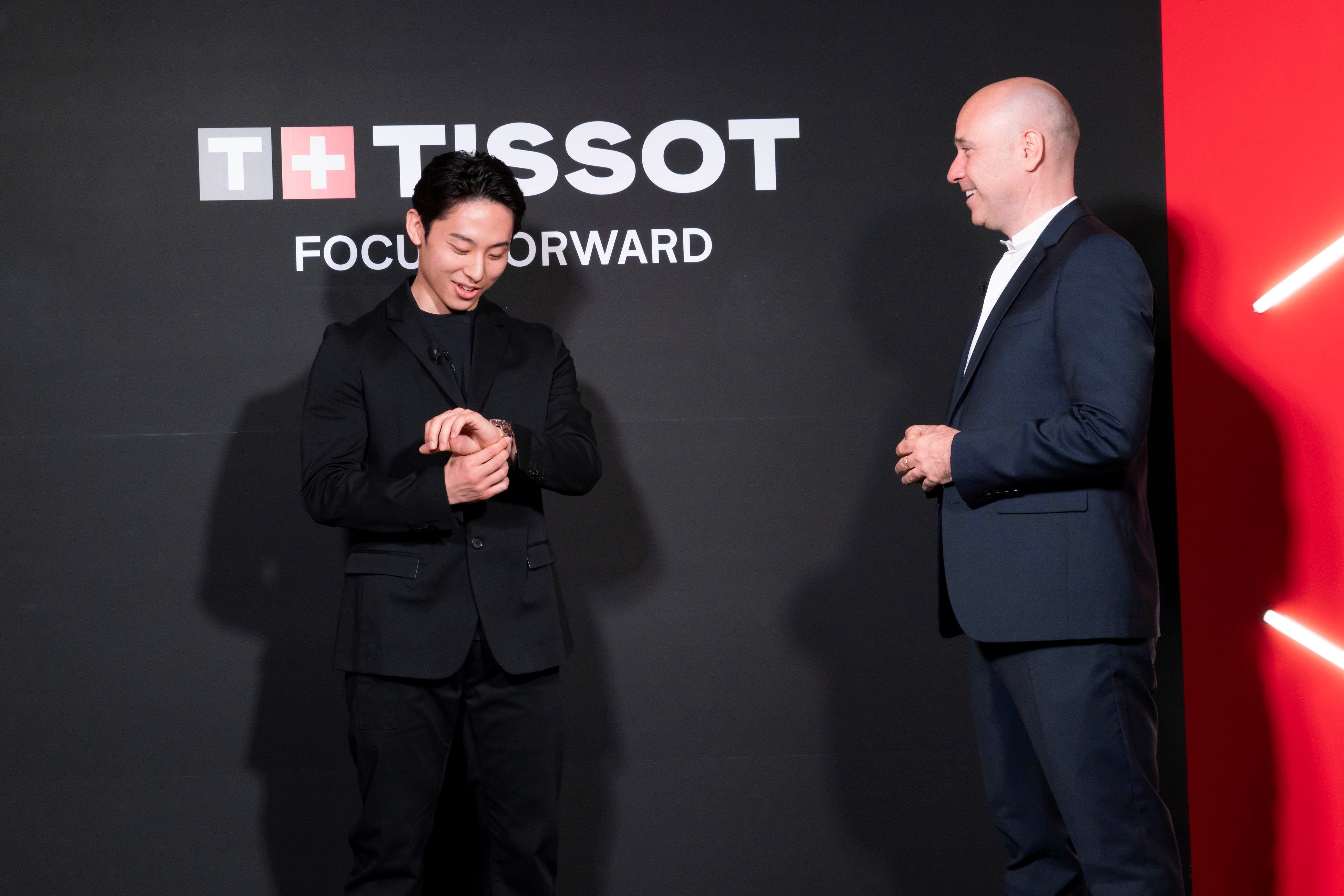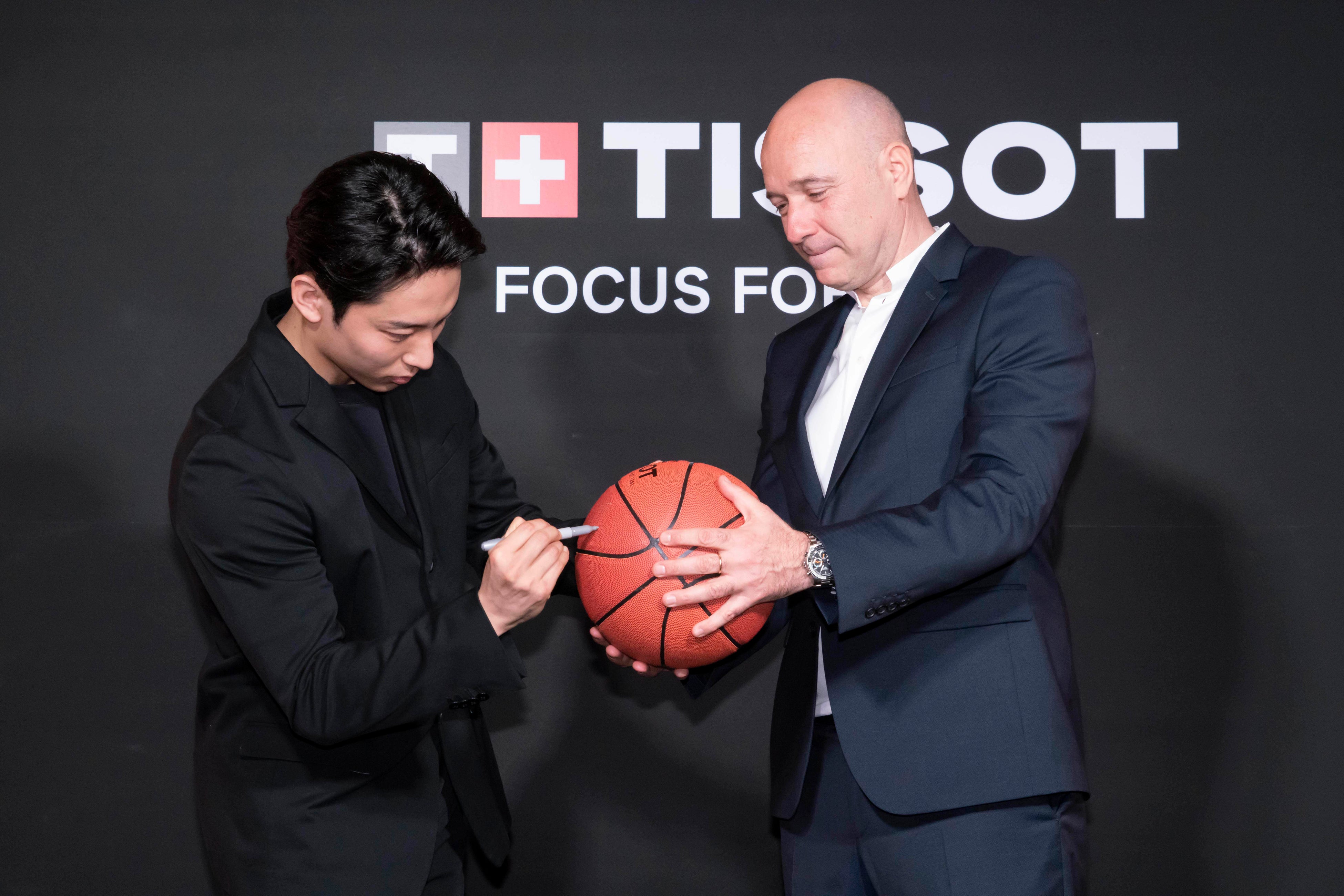 河村勇輝選手とティソCEO シルヴァン・ドラ