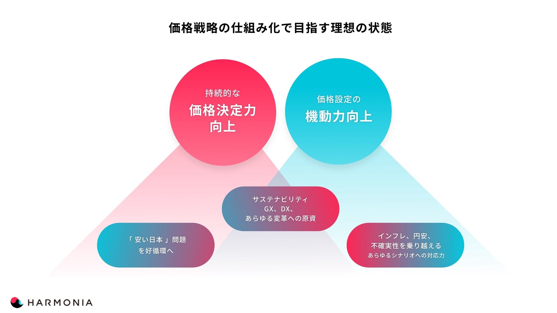 ハルモニアがパートナー企業(ご利用企業)と共に本プログラムで目指すのは、「持続的な価格決定力の向上」と「価格設定の機動力の向上」です。