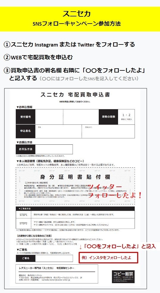 参加方法:①スニセカ公式InstagramまたはTwitterをフォロー