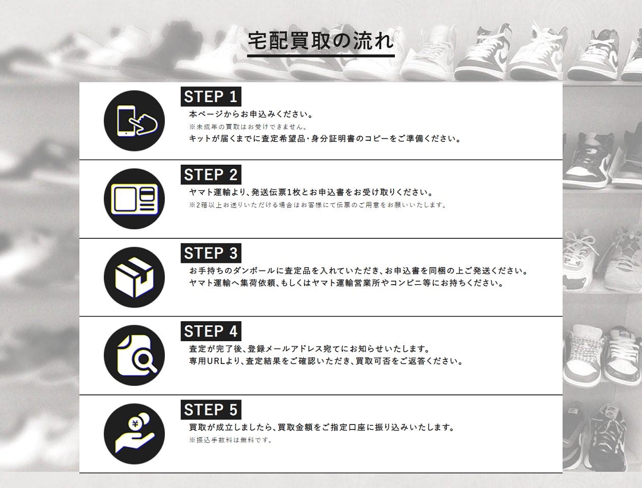 ②スニセカ宅配買取の公式HPから宅配買取を申込む