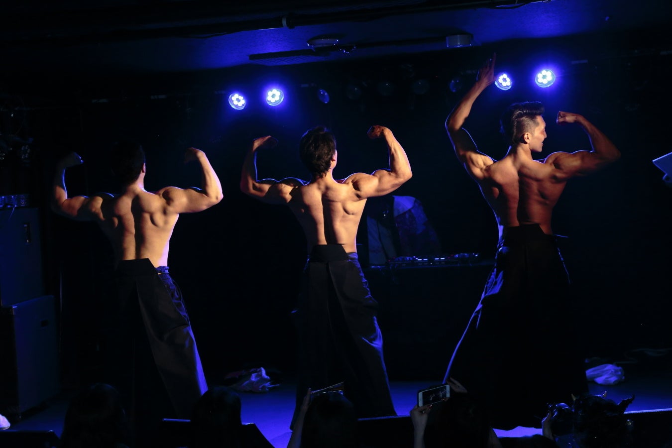 ステージ企画の一つ「筋肉紳士コンテスト」では、出演するALLOUTメンバーが全員並んで筋肉美を競います。
