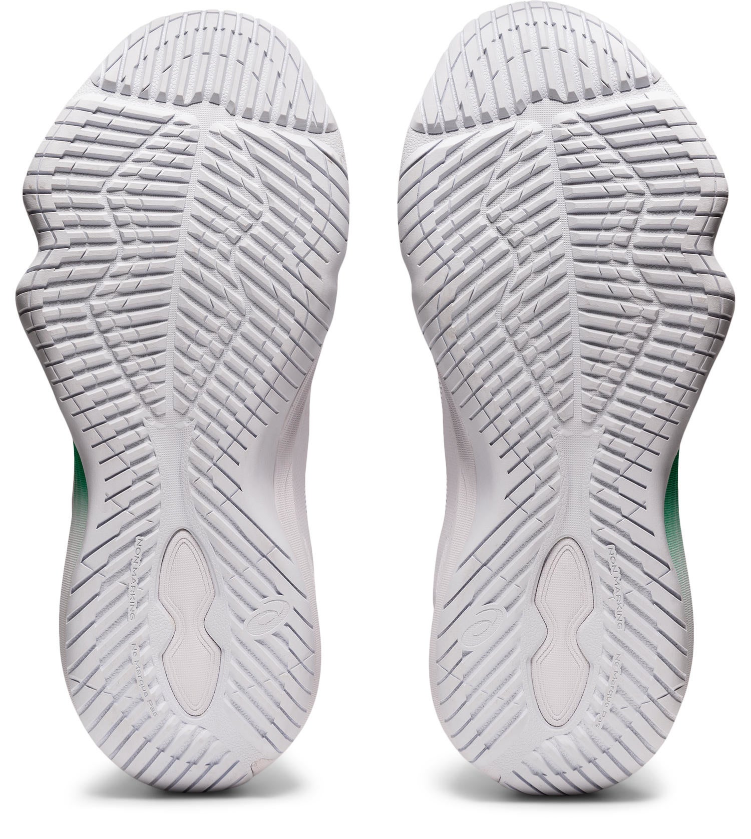 前作に比べて靴底前部を2㎜、後部を4㎜厚くし、かかと部分をラウンド形状にすることで、踏み込みからジャンプ動作までのスムーズな重心移動をサポートしています。前部外側には樹脂製のサポートパーツを追加し、横方向へのブレの抑制とジャンプの踏み込み時の安定性を高めています。