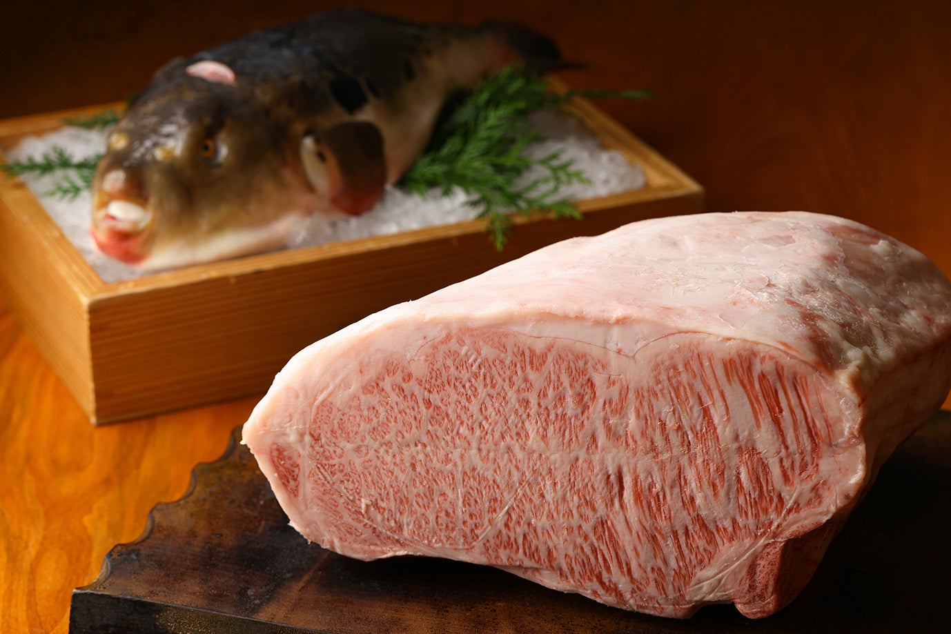 「日本三大和牛」である松阪牛・神戸牛・近江牛は日本のみならず、海外でも人気の高いブランド牛。その味わいや脂ののり、甘さなどの特性に合わせて、調理法を工夫し、それぞれを最も美味しいスタイルで、お楽しみいただきます。さらに、他のとらふぐよりも厚く弾力のある身質や上質で淡白な甘味が特徴といわれる長崎産「三年とらふぐ」もラインナップし、贅沢感をさらに演出します。