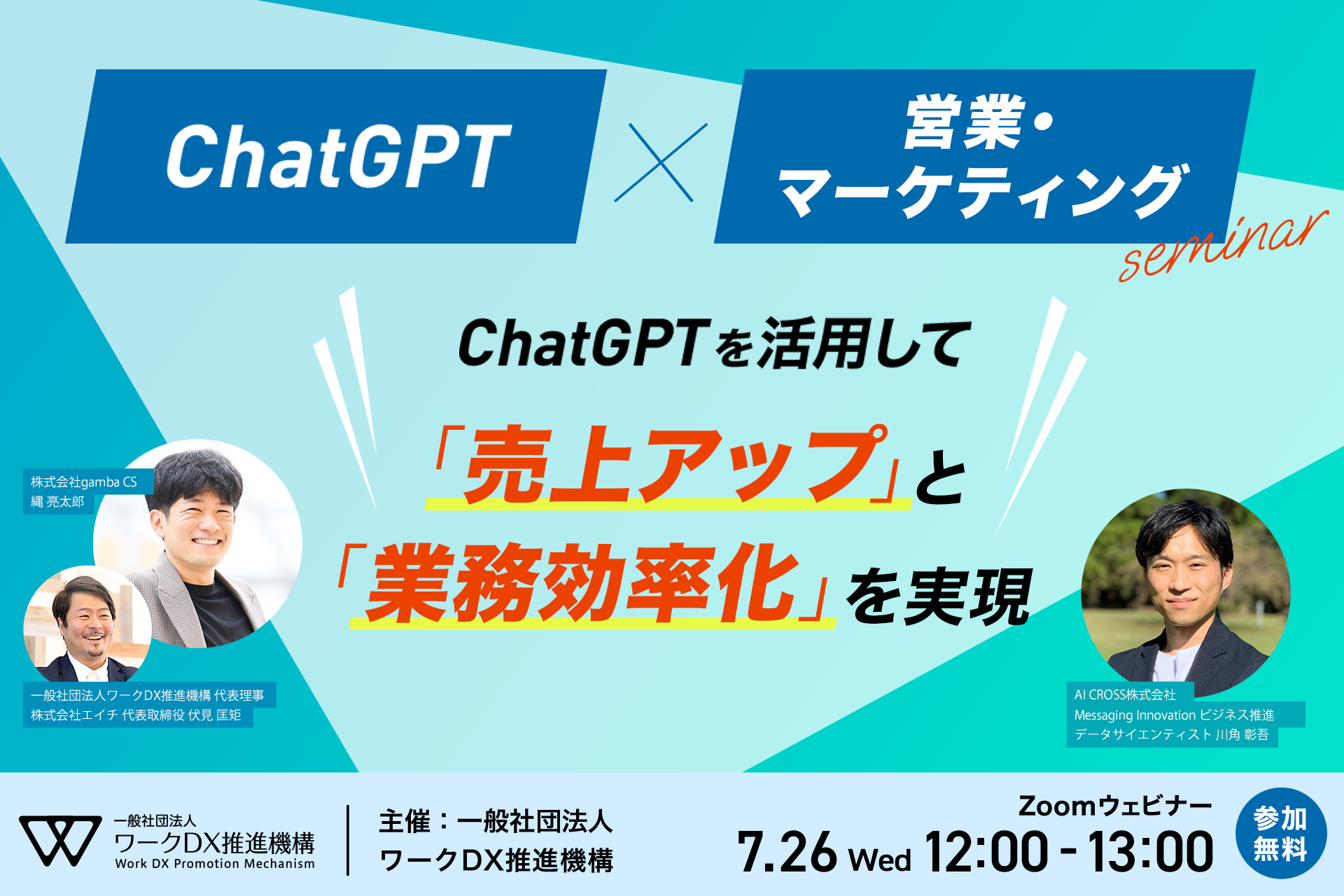 【無料オンラインセミナー】「ChatGPT×営業・マーケティングセミナー~ChatGPTを活用して売上アップと業務効率化を実現」を2023年7月26日12時より開催