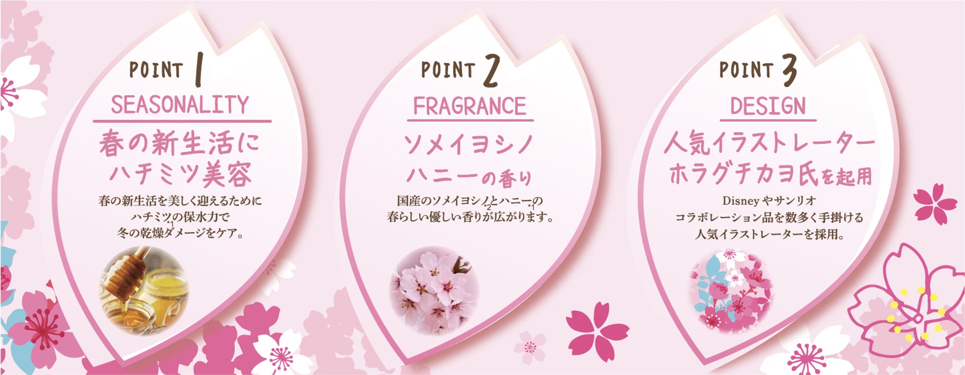 限定白桜のデザインに合わせて、ヤエザクラハニーの香りを採用しています。