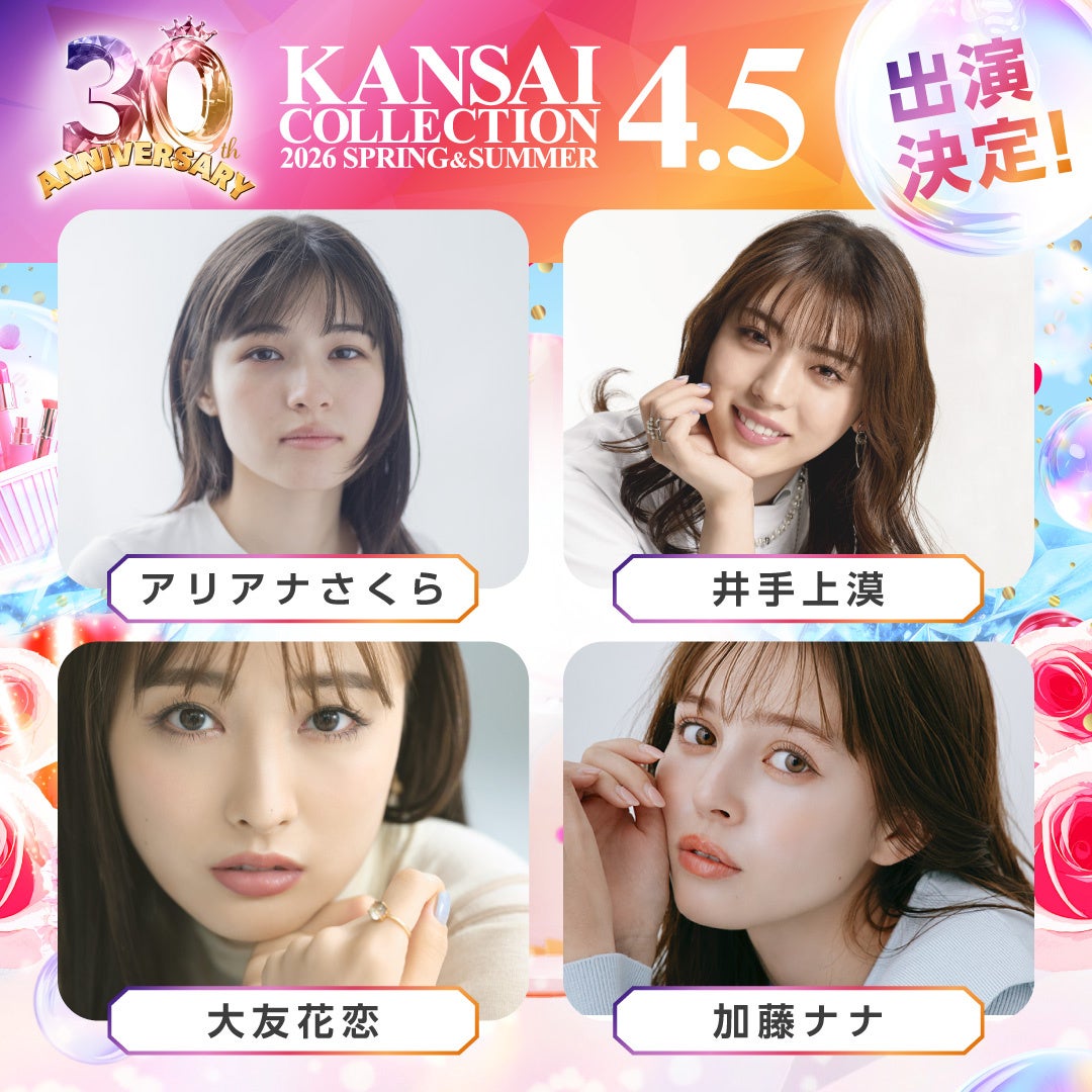 2011年2月に大阪で誕生し、これまで数々の旬なモデル・タレント・アーティストなどとコラボレーションし、関西を盛り上げてきた関西コレクションは今回記念すべき30回開催となります。次のステージへの幕開けと、30回開催に感謝を込めて「30th ANNIVERSARY」をテーマとし、 2026年4月5日(日)に、KANSAI COLLECTION 2026 S/Sの開催を決定しました。