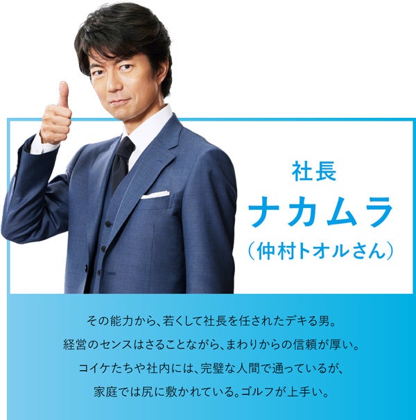 経営戦略に悩む社長を演じる仲村トオルさんが新たに登場!小池栄子さん、杉本哲太さん、佐藤二朗さんらが演じる人事戦略チームとともに、経営・人事の課題をタレントパレットで解決へ!