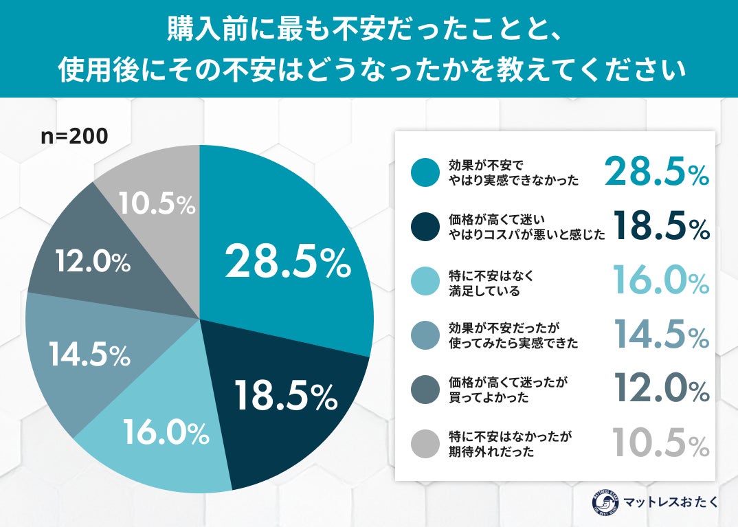 「効果への不安」が的中。 購入前に効果を不安視していた人のうち、28.5%が「やはり実感できなかった」と回答