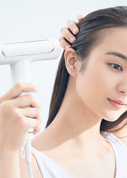 マイナスイオンと遠赤外線のW パワーで、髪も頭皮もしっとり素早くドライ。温冷自動切換えのツヤモードを使ってくせやうねりを伸ばしてツヤ髪に。