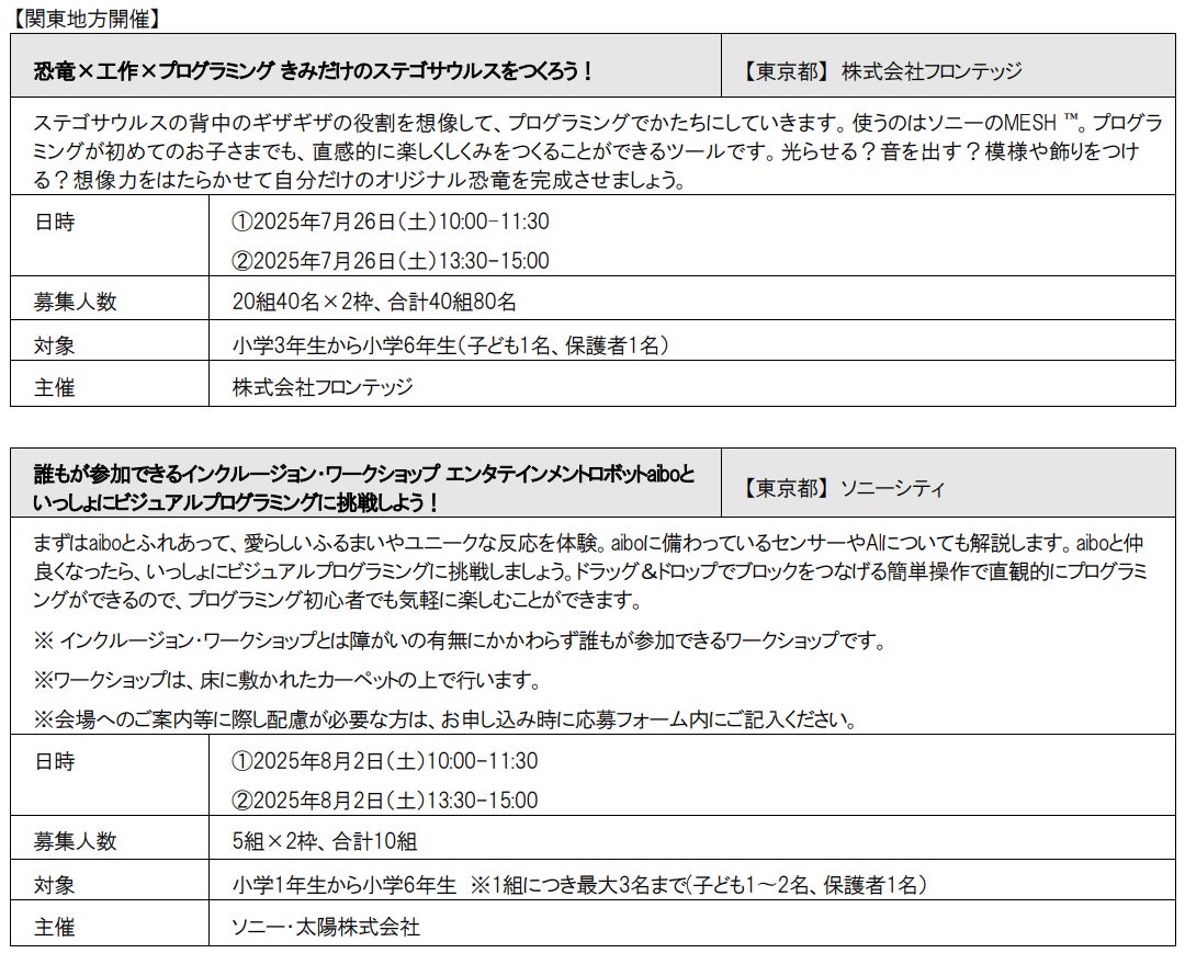 プログラミングや科学工作など、ソニーグループのアセットを活用した多様なワークショップを全国で開催します。