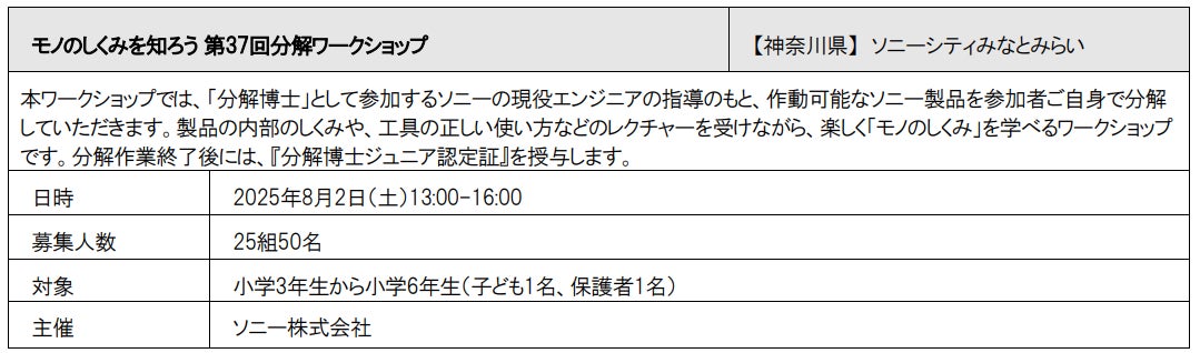 ソニーグループ株式会社(以下、ソニー)は、教育プログラム「CurioStep with Sony(キュリオステップ)」を展開しています。プログラムの一環として、今年も7月26日(土)から8月27日(水)にかけて、小学生から高校生までを対象にした、子どもたちの学びや好奇心を広げるイベント「CurioStep サマーチャレンジ2025」を開催します。