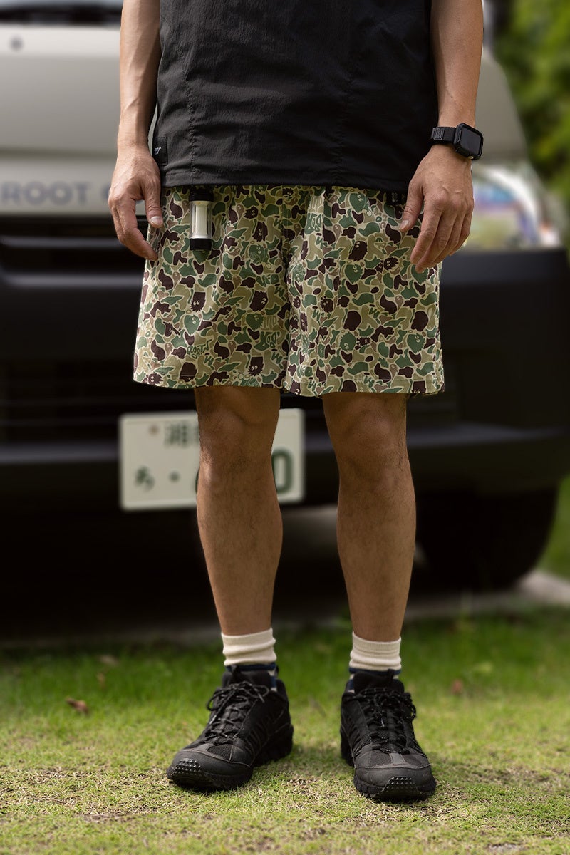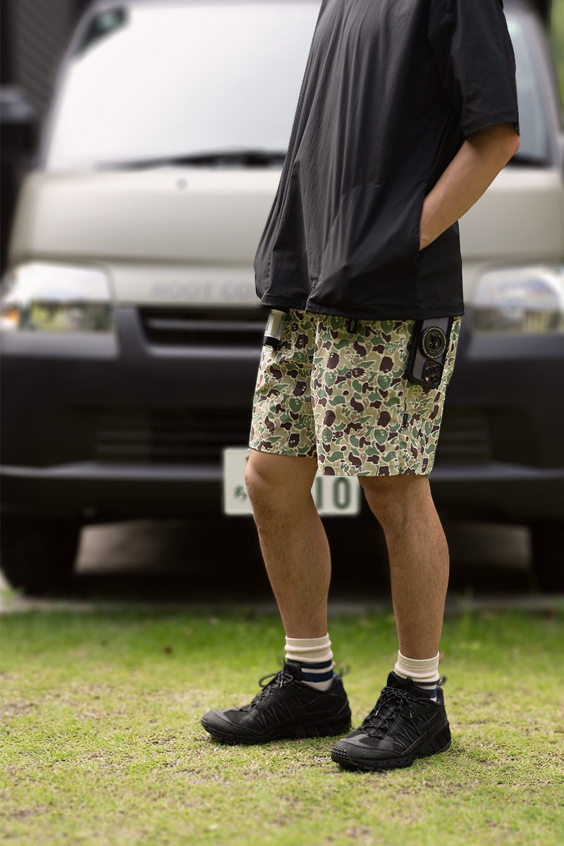 「アウトドアモンスター×ROOT CO.」オリジナルカモフラ柄の多機能アウトドアショーツ、6/21(土)より販売開始