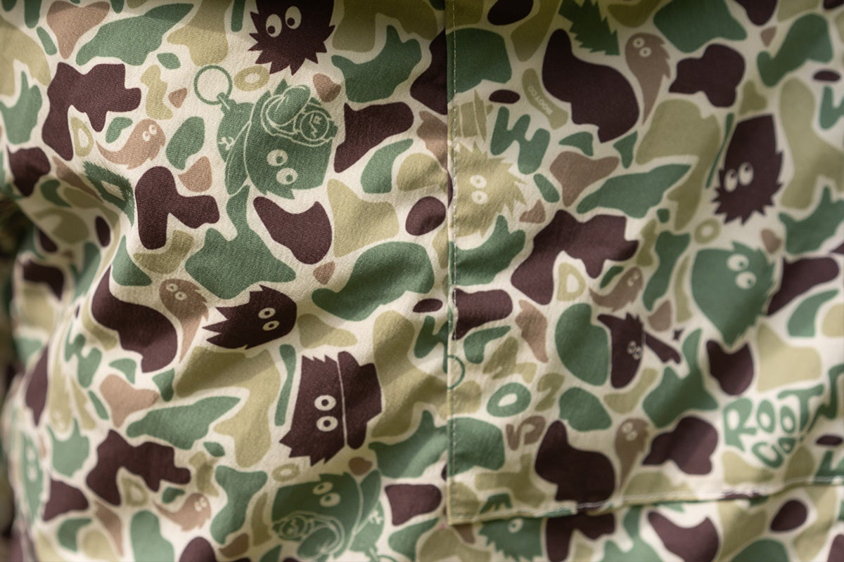「アウトドアモンスター」のカモフラ柄にROOTのロゴを落とし込んだ、オリジナル柄のショーツです。