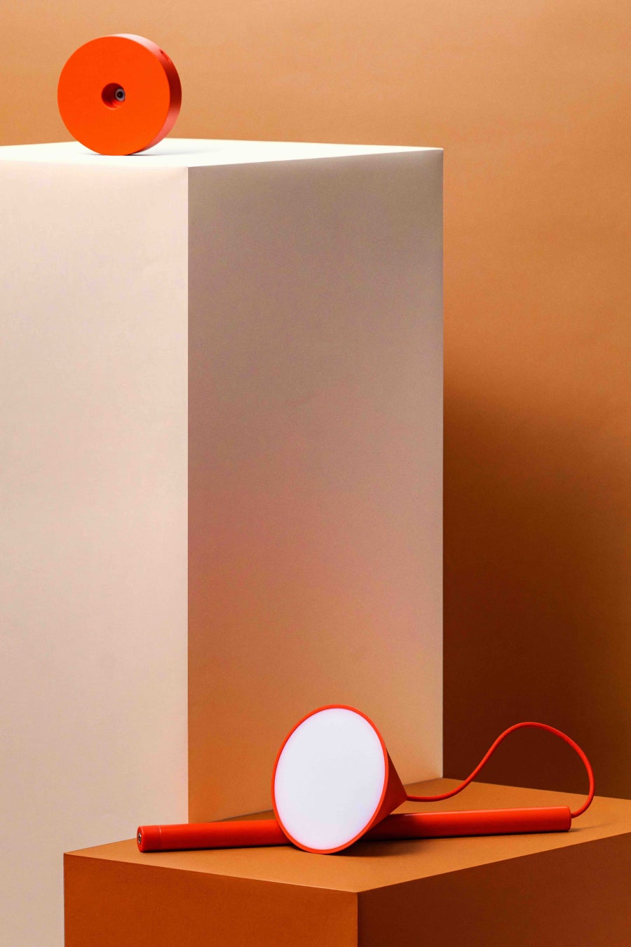日本語で、ブロック等を積み上げる玩具を指す「つみき」からインスピレーションを受けた充電式のデスクランプ。一般的なテーブルライトを構成するシェード、ステム、ベースという要素を再構築することで新しい照明のあり方をデザインしました。シェードはマグネットでステムに付いており、好みに合わせて上下にスライド、360度回転させることができます。また、ステムにバッテリーを内蔵しているため、ベースから取り外してポータブルライトとして持ち運ぶことも可能。リラックスした空間作りから集中して作業に臨む時間まで、想像にまかせて「つみき」を組み立てて遊ぶように、暮らしの中で自由に色々な使い方を見つけて欲しいという願いを込めました。