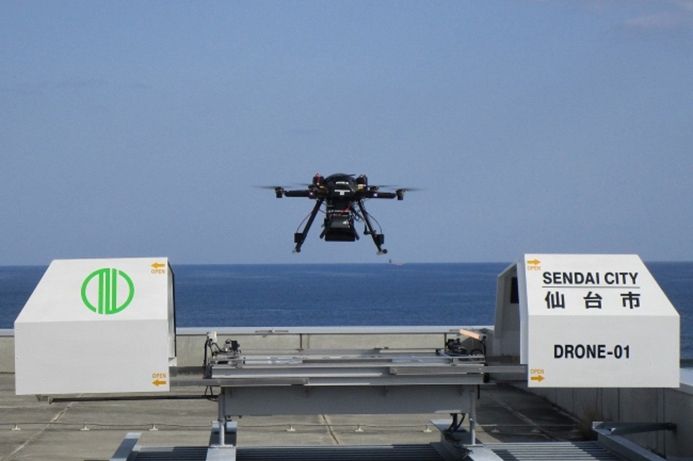 本事業における実証実験の一部では、宮城県仙台市などにおいて既に運用されている「津波避難広報ドローンシステム」を活用し、Jアラートと連動してドローンが自動で発進・放送を行う仕組みの検証が行われました。