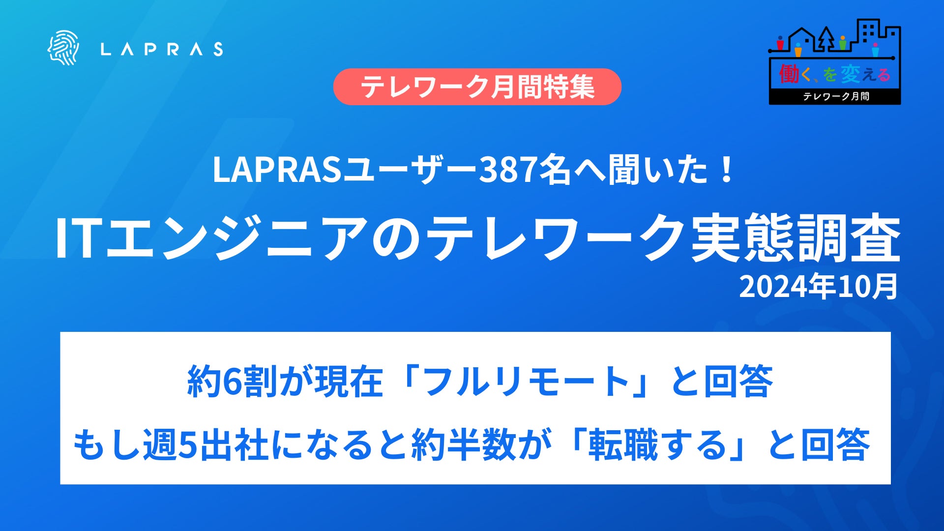 【ITエンジニアのリモートワークの実態調査】LAPRASユーザーのITエンジニアの約6割はフルリモートワーク実施
