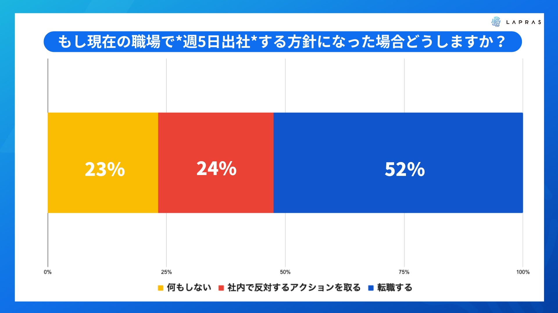 ・もし週5日出社になる場合、約半数が転職をすると回答しました。