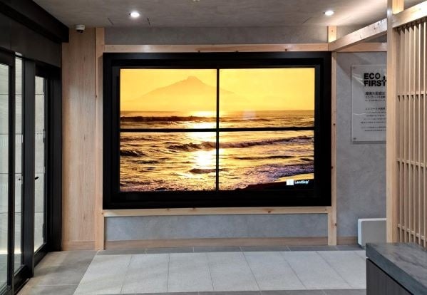 今回の協業による初の事例として2024年2月14日にリニューアルオープンを迎える「湯元「花乃井」スーパーホテル大阪天然温泉」にオリジナルコンテンツの他、ニュース情報※1や地震情報※2等を配信する4面マルチサイネージを導入いたします。