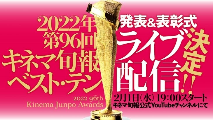 平素より、大変お世話になっております。この度、2023年2月1日(水)19時より、キネマ旬報公式YouTubeチャンネルにて「2022年 第96回キネマ旬報ベスト・テン」発表&表彰式のライブ配信を行うことが決定いたしました。