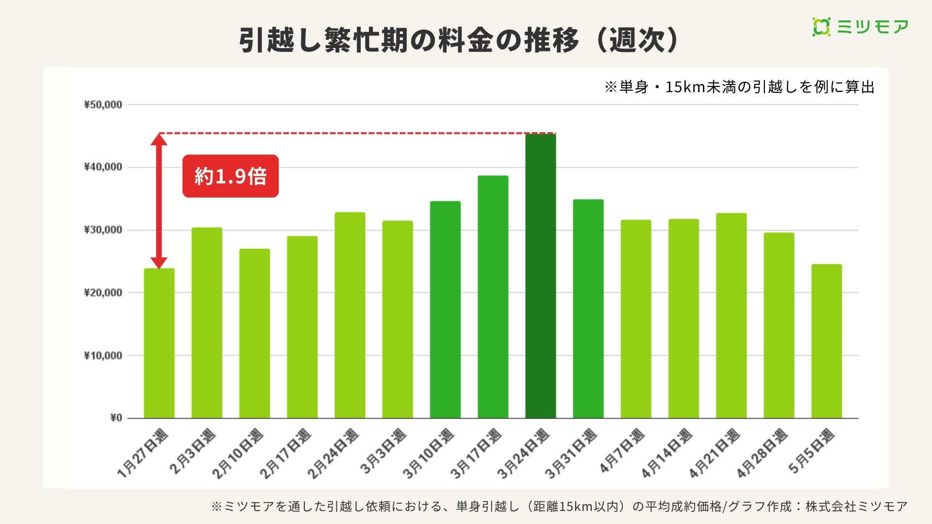 荷物量が増えたり長距離になると、通常期の2倍ほどの費用になることもあります。