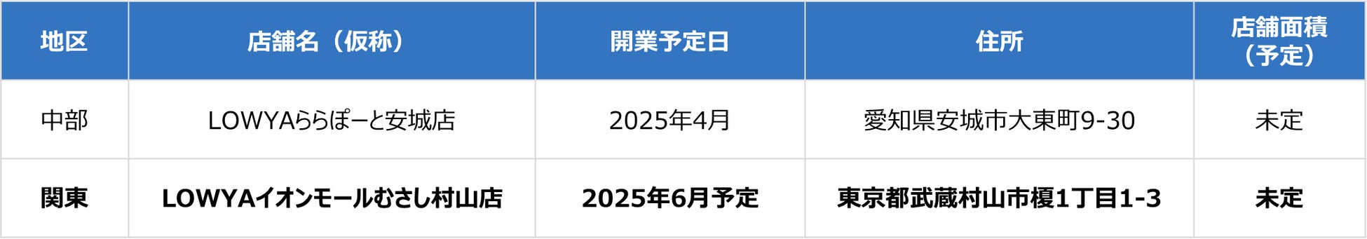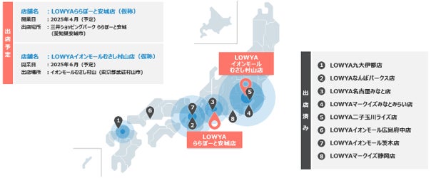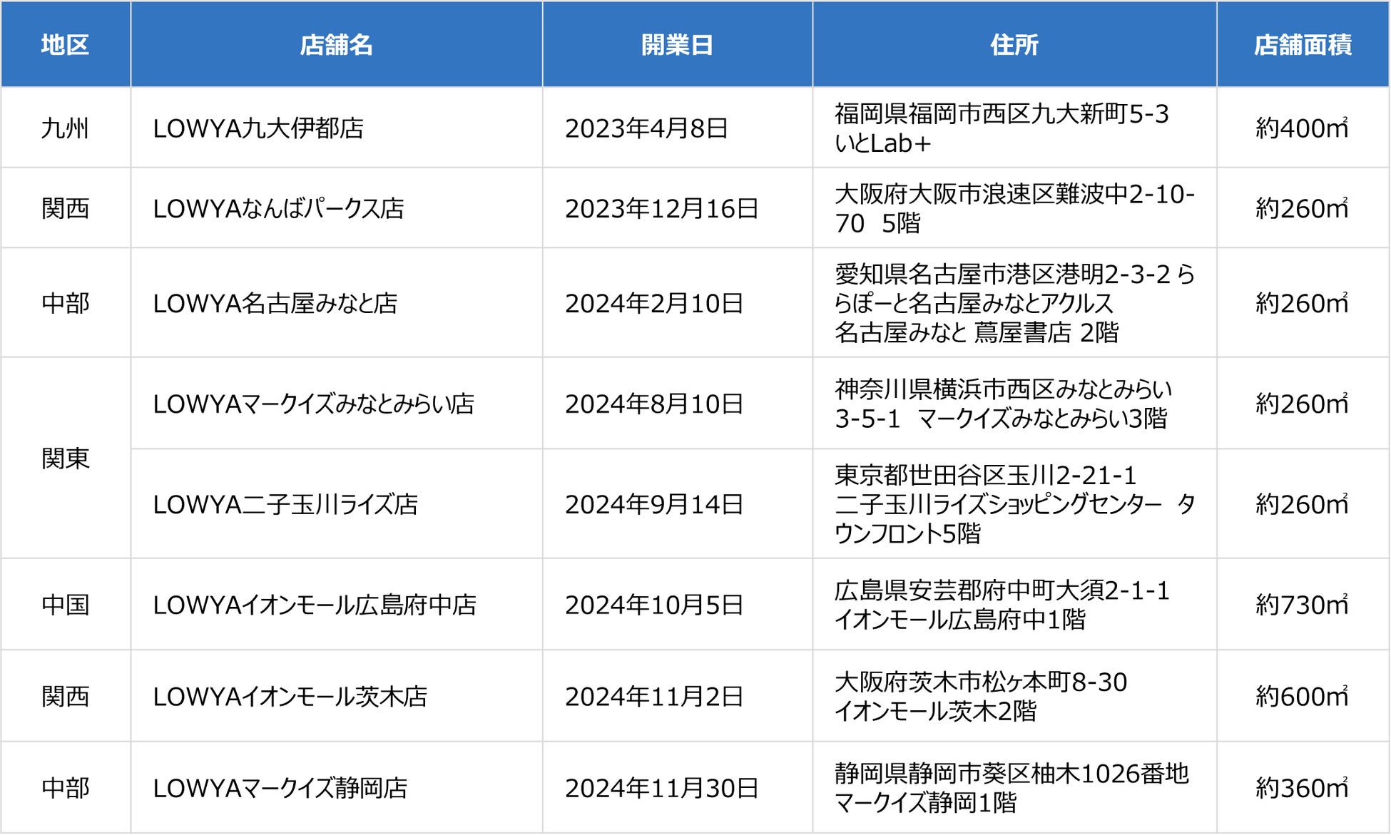 |LOWYA 実店舗出店状況一覧(開業日順)