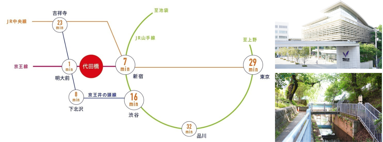 当商品の対象物件は、新宿・渋谷など都市部へのアクセスもよい利便性に優れた立地にあるRC一棟マンションです。また、近隣には玉川上水や神田川が流れる自然豊かなエリアであり、明治大学や私立高校、専門学校などもあり、学生も多く、活気があります。好立地かつRC造による耐久性とデザイン性を兼ね備えた本物件は、賃貸需要が高く、継続的かつ安定的な家賃収入が見込めます。
