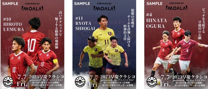 来シーズンからジュビロ磐田へ加入することが内定し、特別指定選手としてルヴァンカップでプロデビューした早大4年の植村洋斗(うえむら ひろと)選手や、来シーズンから横浜FCへ加入することが内定し、U‐18日本代表でゲームメーカーとして活躍した経験を持つ早大4年の小倉陽太(おぐら ひなた)選手らがラインナップ。試合の行方とともに、どの選手のNFTが当たるかにも注目が集まります。