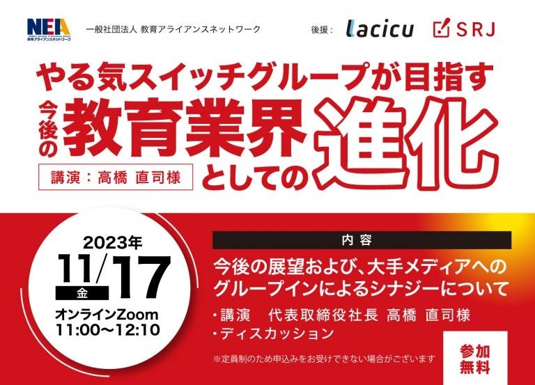 【教育業界関係者必見】SRJ後援の無料オンラインセミナーが11月17日開催