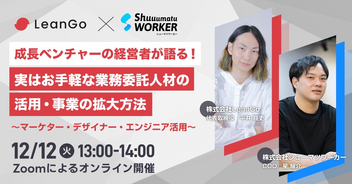 【成長ベンチャーの経営者が語る】事業成長を止めないための人材獲得戦略をテーマにセミナーを開催 !LeanGo × シューマツワーカー