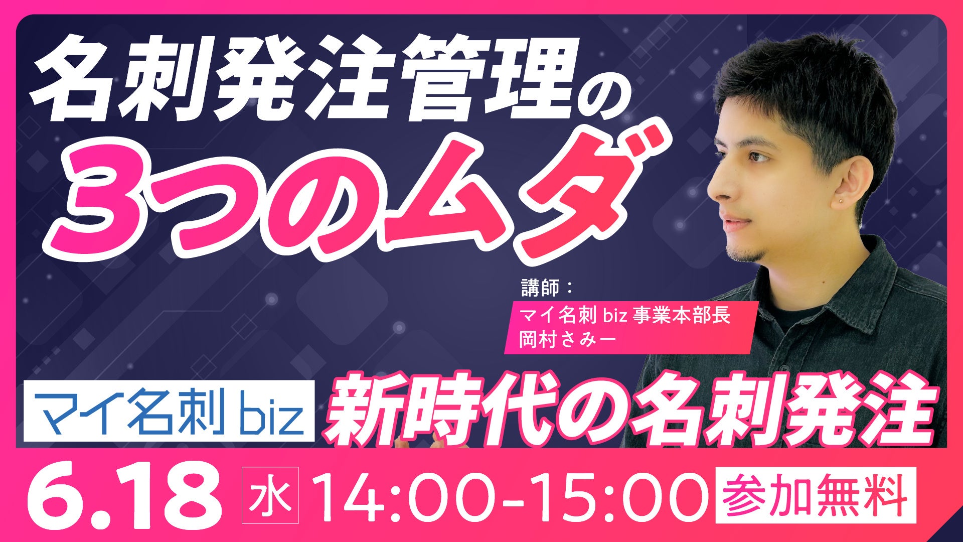 法人向け名刺発注管理DXサービス『マイ名刺 biz』を運営する株式会社サムライソード(本社:東京都豊島区)は、2025年6月18日 (水) 14:00〜15:00にて無料ウェビナー『名刺発注の手間とコストを大幅に削減!~業務効率化で作業工数を95%削減した事例をご紹介!~』を開催いたします。