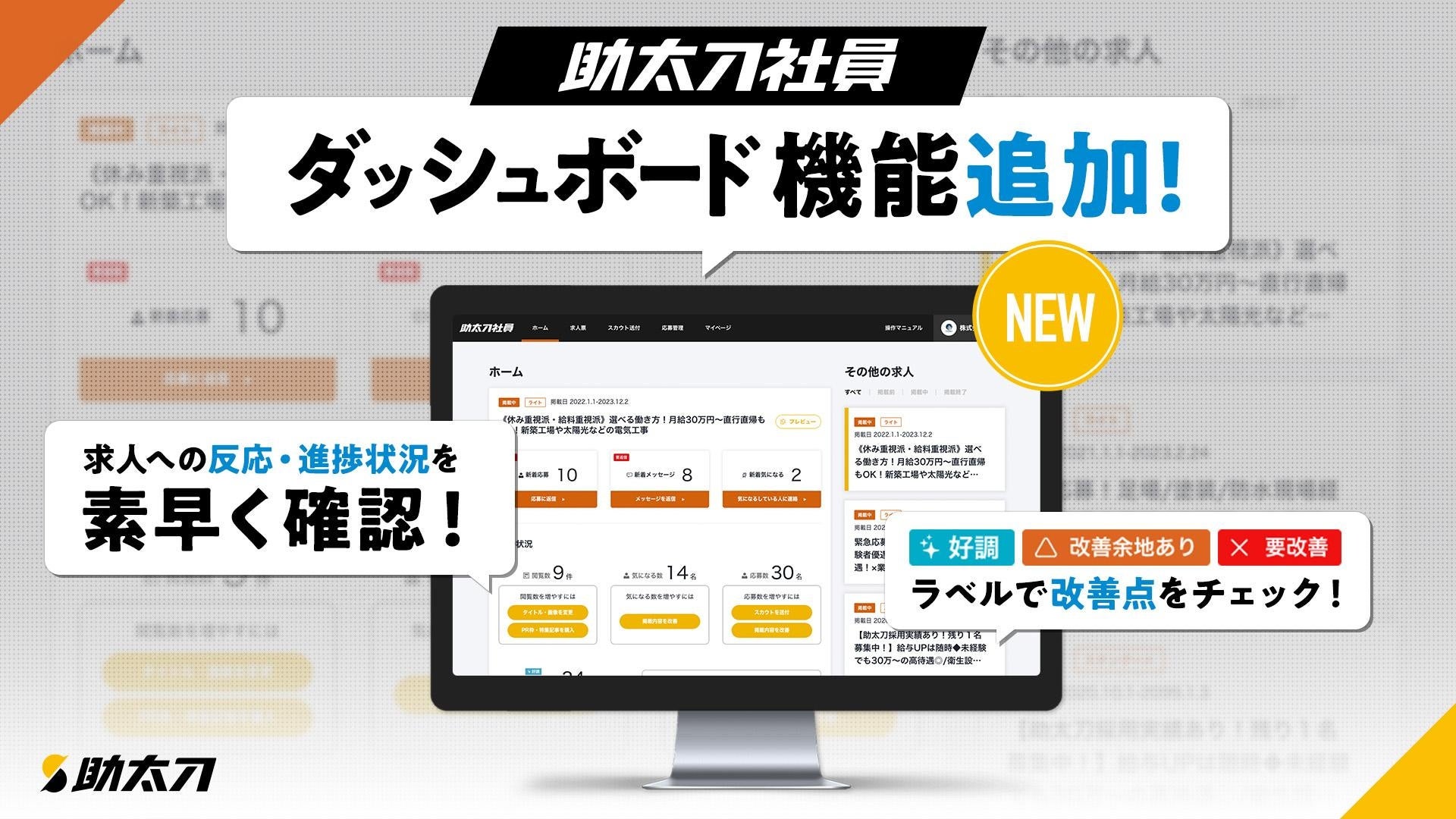 建設業特化の求人サービス「助太刀社員」にダッシュボード機能を追加!