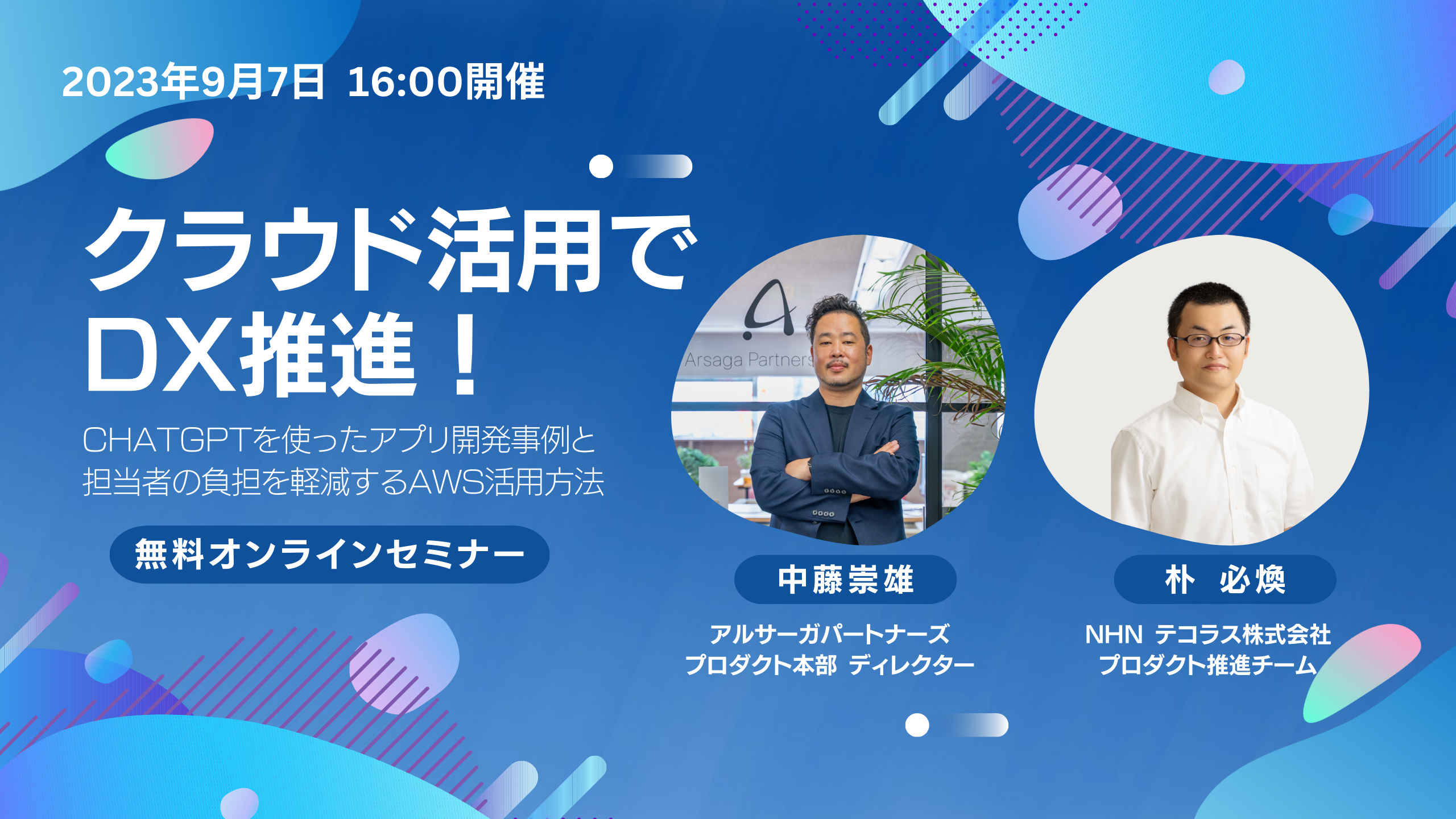 【9/7(木)開催】クラウド活用でDX推進!「ChatGPT」活用で社内業務効率化をテーマにアルサーガパートナーズが登壇(参加費無料)