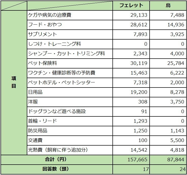 アニコム損保のペット保険「どうぶつ健保」の契約者に対し、2022年1月1日~12月31日の1年間にペット1頭へ支出した費用について、インターネット上でアンケートを実施。
