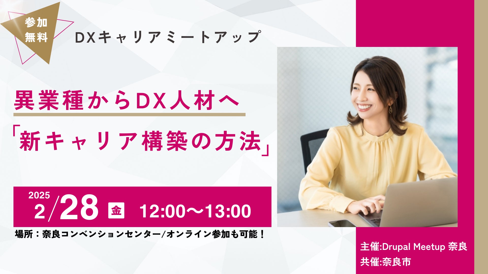 このイベントは様々な理由で働き方や生活スタイルの変化を求められるこの時代に、デジタルトランスフォーメーション(DX)に興味を持って挑戦を考えている方や新たな目標を志す方たちが一堂に会し、DXやDrupalの力でキャリアの可能性を広げるためのミートアップです。