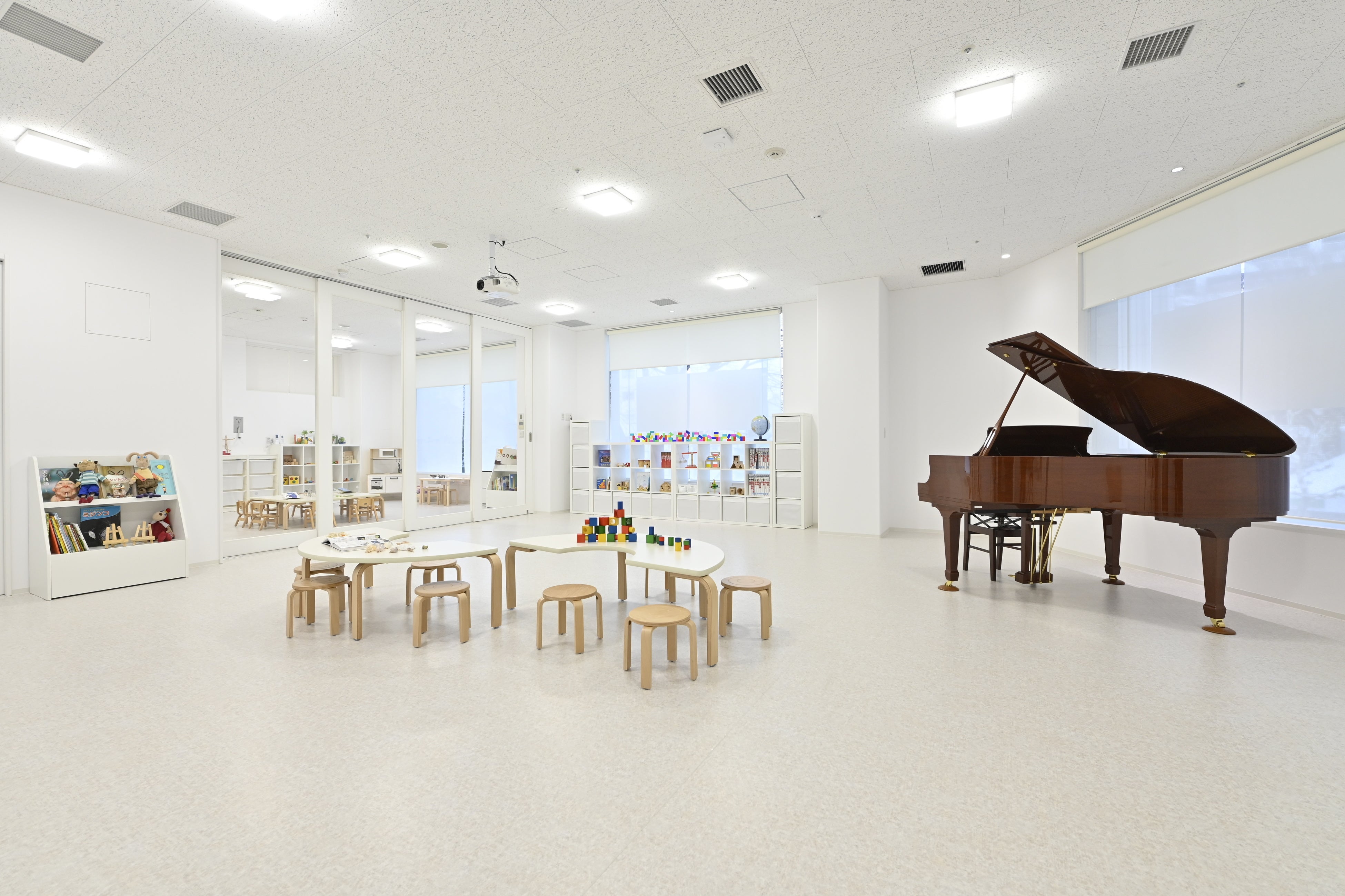 ALS広尾では、各部屋でお子様がのびのびと過ごせる広さを完備しております。お子様への一流・本物体験をテーマに、ネイティブスタッフや各プログラムに一流の講師を据え、ミュージックルームにはSTEINWAY&SONSのグランドピアノを配置しました。装飾や知育玩具などの細部にもこだわり、お子様の好奇心を引き出して自発的な行動を促す様々なスペースがあります。そして忙しい保護者様のサポートができるよう、コワーキングスペースを設置しました。
