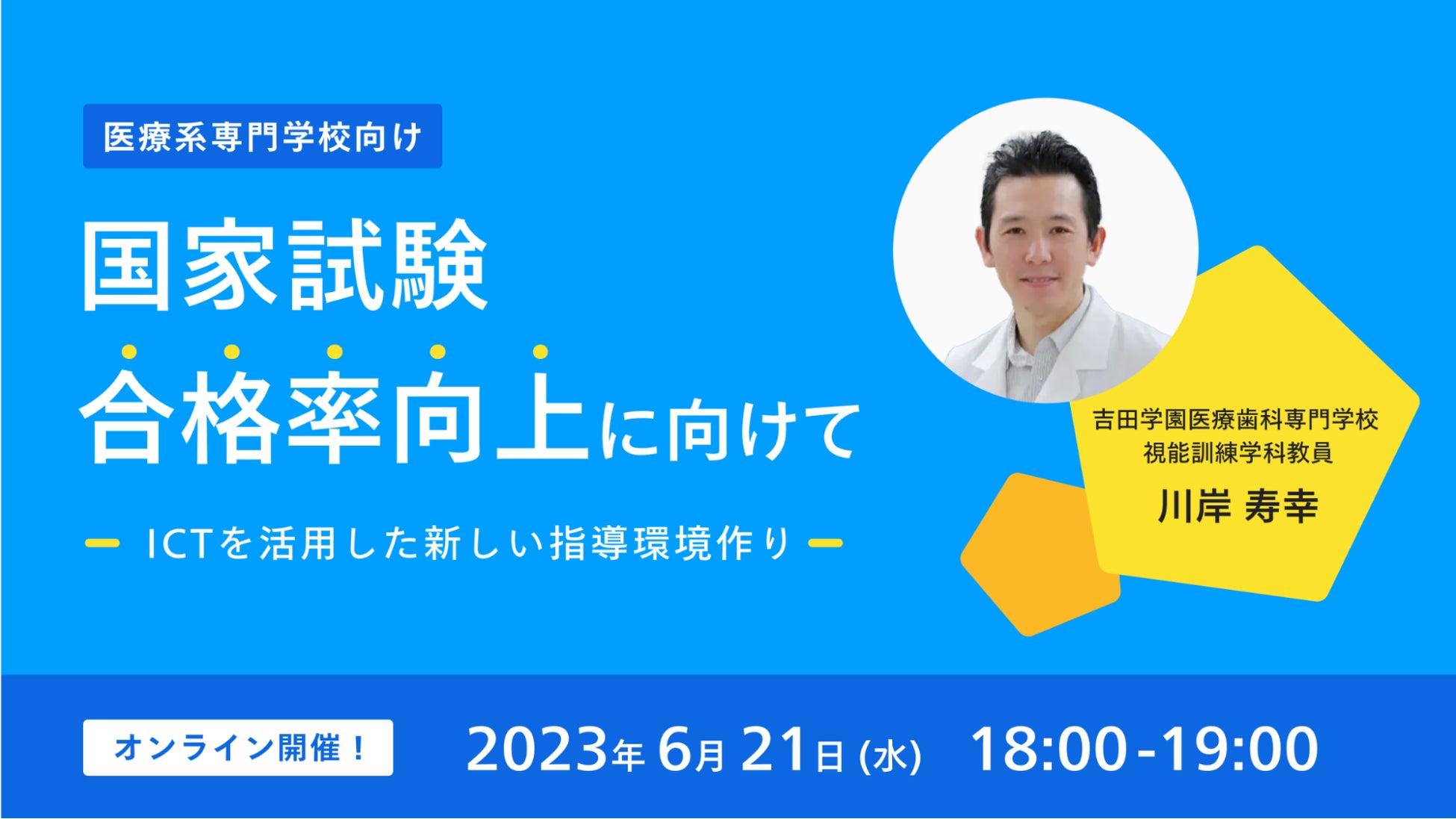 WEBセミナー「【医療系専門学校向け】国家試験合格率向上に向けて〜ICTを活用した新しい指導環境作り〜」【2023年6月21日(水)18時~】
