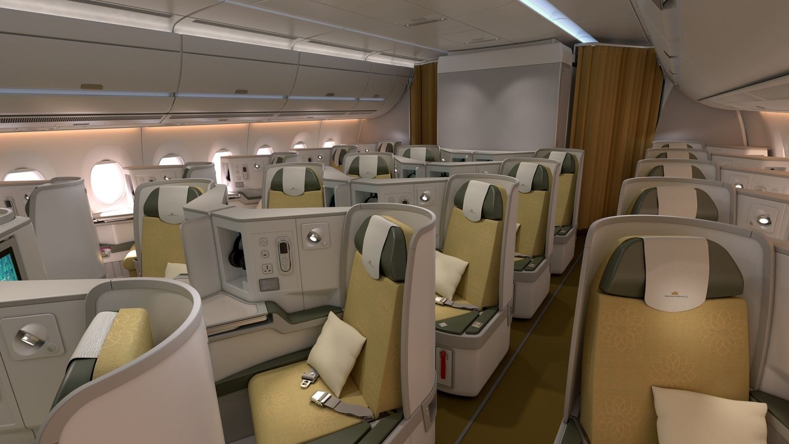 2026年1月1日~3月28日の期間は名古屋-ハノイ線に、また2026年2月1日~2月26日の期間は名古屋-ホーチミン線に、最新鋭ワイドボディ機「エアバスA350-900」を導入します。これにより座席数は最大305席となり、エコノミークラスでは10インチの個人用モニターを備え、よりパーソナライズされたエンターテイメントを提供します。ビジネスクラスはフルフラットシートや広々としたテーブル、15.4インチのプライベートモニター、ゆとりある収納に加え、通路への直接アクセスが可能な独自レイアウトで、さらなる快適性を実現しています。また、受託手荷物はビジネスクラス・エコノミークラスともに従来の1個から2個に増え、より便利にご利用いただけます。