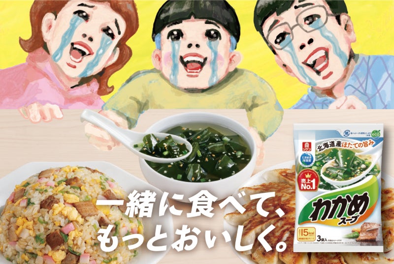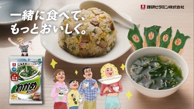 今回のWebムービーではクセの強い3人家族に加え、「Brotherわかめ」や「半チャーさん」など、さらに個性豊かなキャラクターが登場します。炒飯や餃子と一緒に『わかめスープ』を食べてもらうことで、もっとおいしく、食卓も楽しくなることを訴求し、需要拡大を狙います。