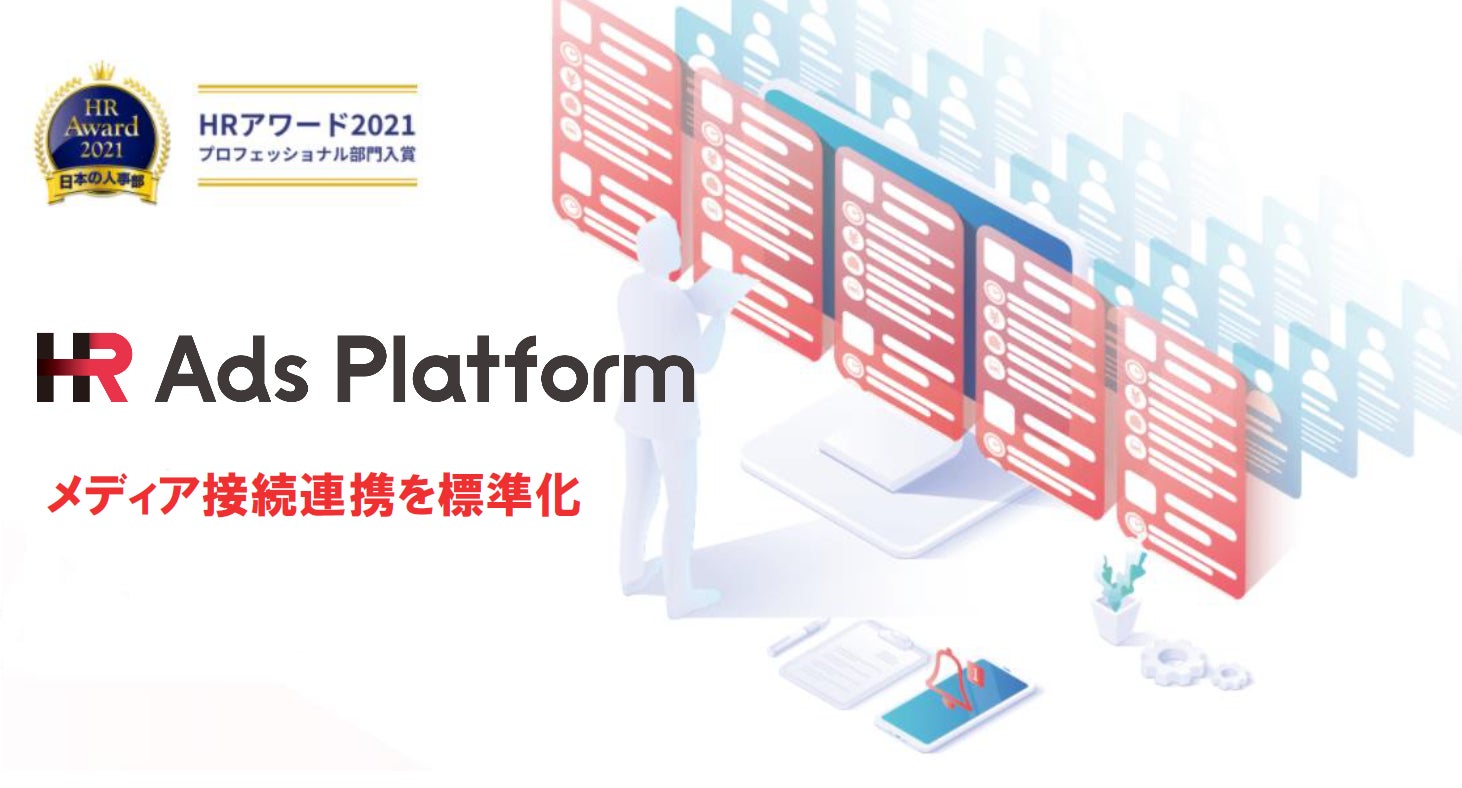 HRアドプラットフォームは、企業とより多くの求職者との出会いを創出する運用型求人広告プラットフォームです。2020年10月にサービスを開始し、日本の人事部「HRアワード」に入賞するなど高い評価を頂いています。HRアドプラットフォームは多数の求人メディアと連携し、求人を出したい企業と求人を掲載したいメディアをアドテクノロジーでマッチングします。
