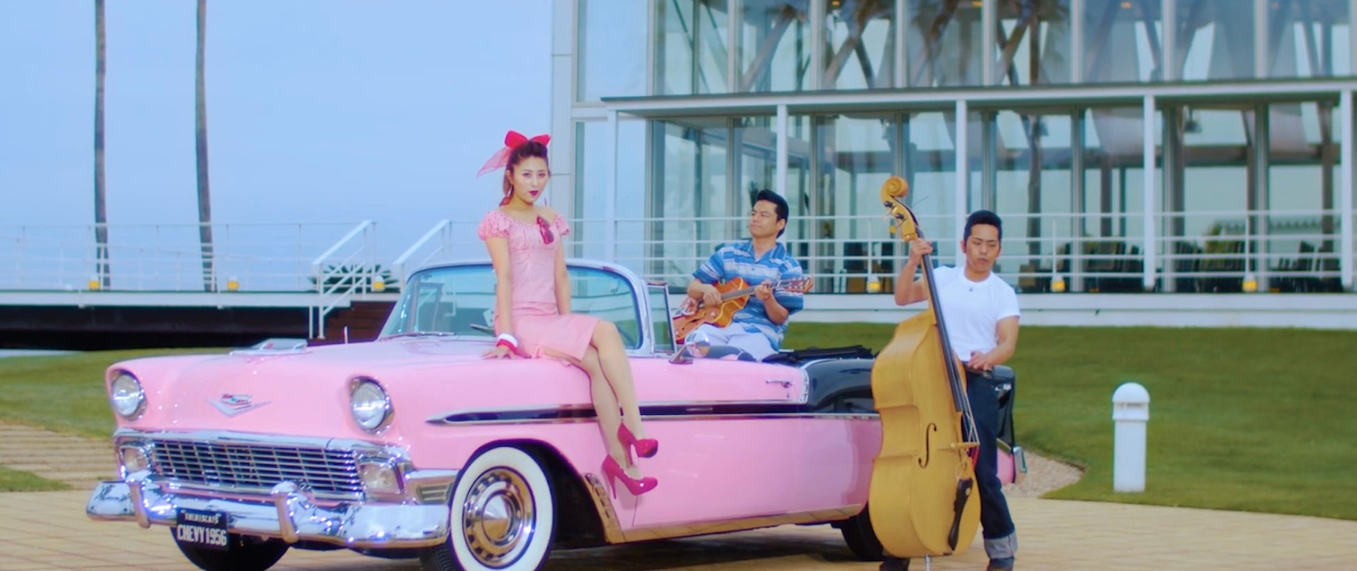 撮影に使用されたシボレーのベルエアは通称「ビスキャッツ号」と呼ばれ、昨年10月に福岡で開催されたアメリカンカルチャーイベント「The Rockin’ Cruisin」で大賞にあたるROCKIN’ CRUISIN AWARDにも選出された名車でThe BiscatsのYouTubeチャンネルでもベルエアに関連する動画は人気があります。