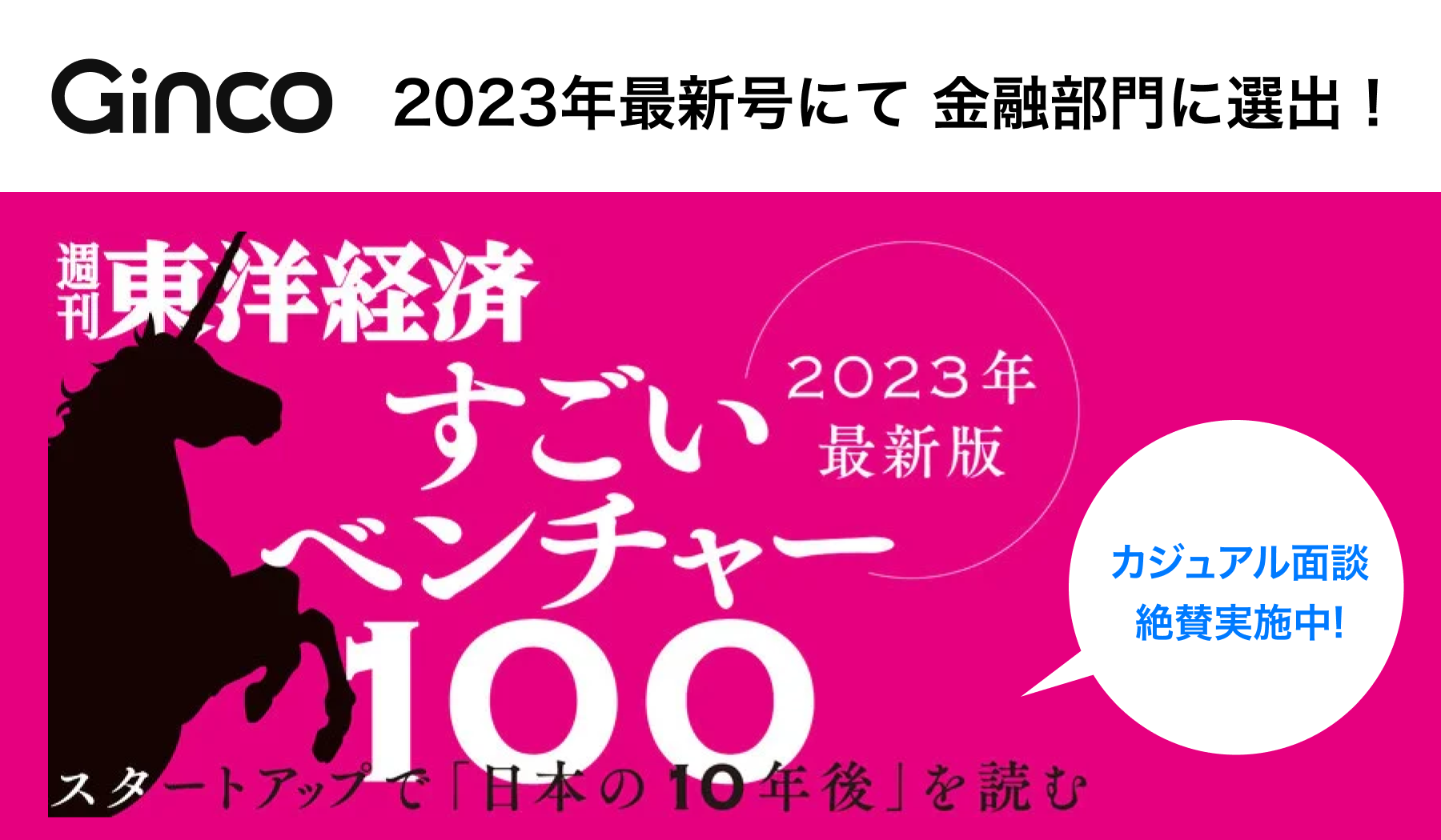 週刊東洋経済 特集「すごいベンチャー100」 2023年最新版にGincoが選ばれました。