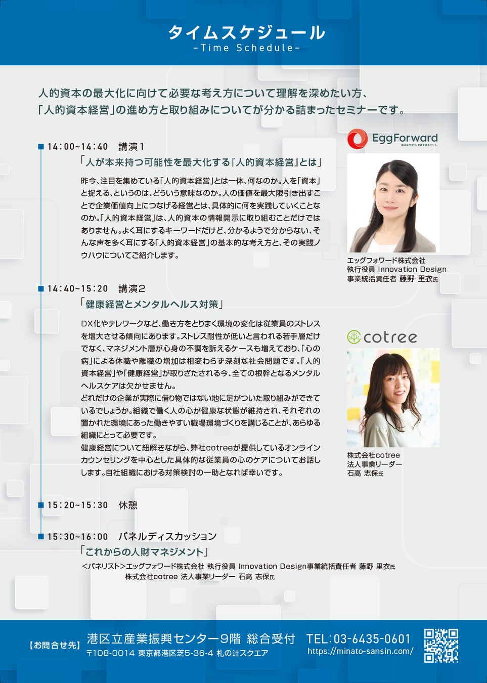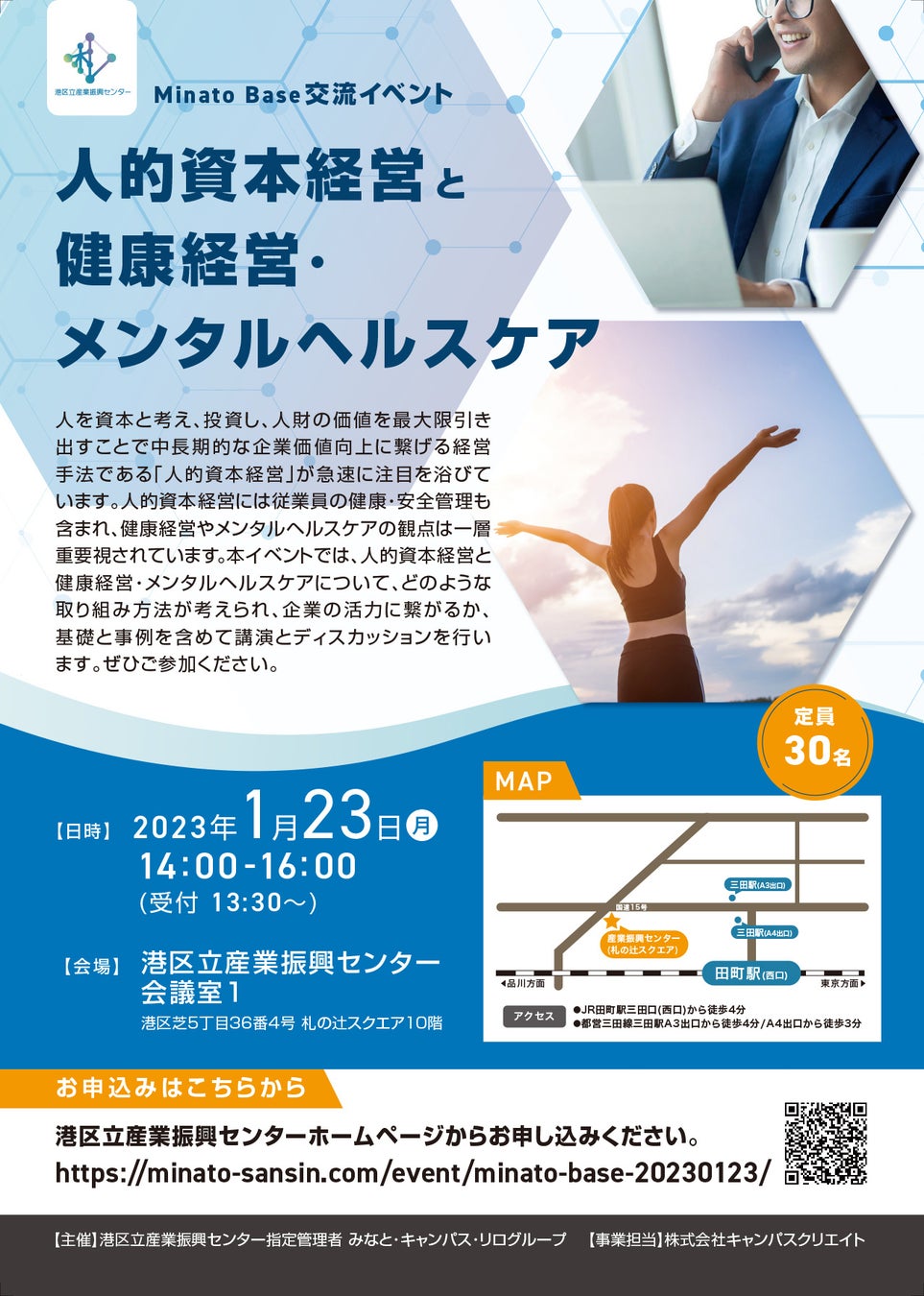 人的資本経営と健康経営・メンタルヘルスケア【Minato Base 交流イベント】1/23に港区立産業振興センターにて開催。入場無料の事前来場者申込み受付開始。