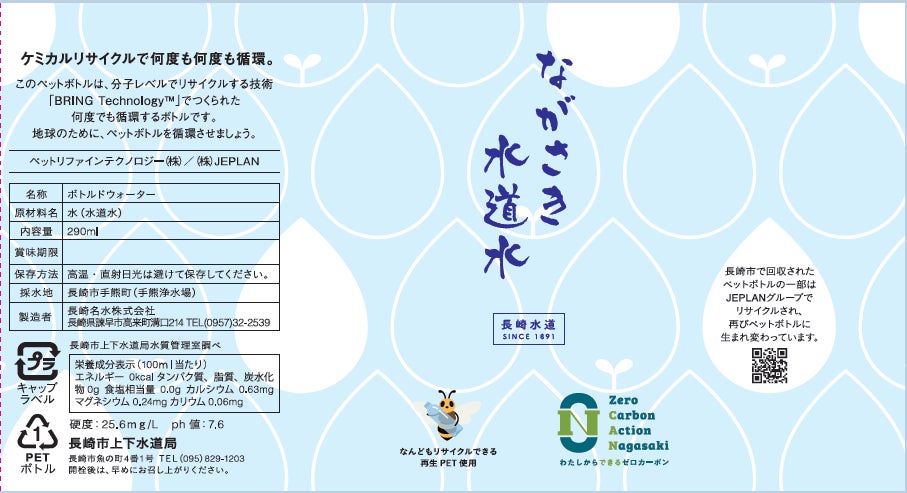 JEPLANが“ボトルtoボトル”を協働する長崎県 長崎市と再生PET樹脂を用いた地域オリジナルの循環型ボトル「ながさき水道水」を制作