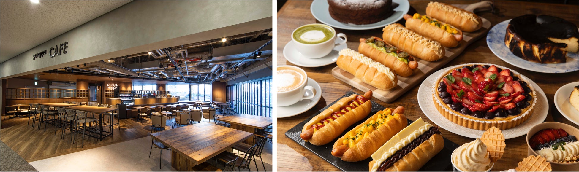 コージーで落ち着いた雰囲気のカフェでは、スイーツや軽⾷に加え、ソフトドリンクやアルコールも幅広く取り揃えております。さらに、テラスへとつながる開放的な空間が広がり、天気の良い⽇は美しい景⾊を眺めながら、ゆったりとしたカフェタイムをお楽しみいただけます。