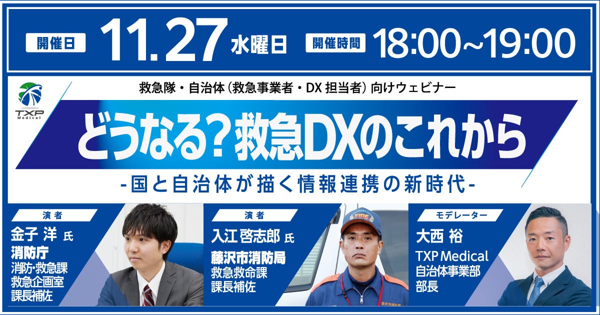 消防・自治体向けWebinar「どうなる?救急DXのこれから -国と自治体が描く情報連携の新時代- 」11月27日開催