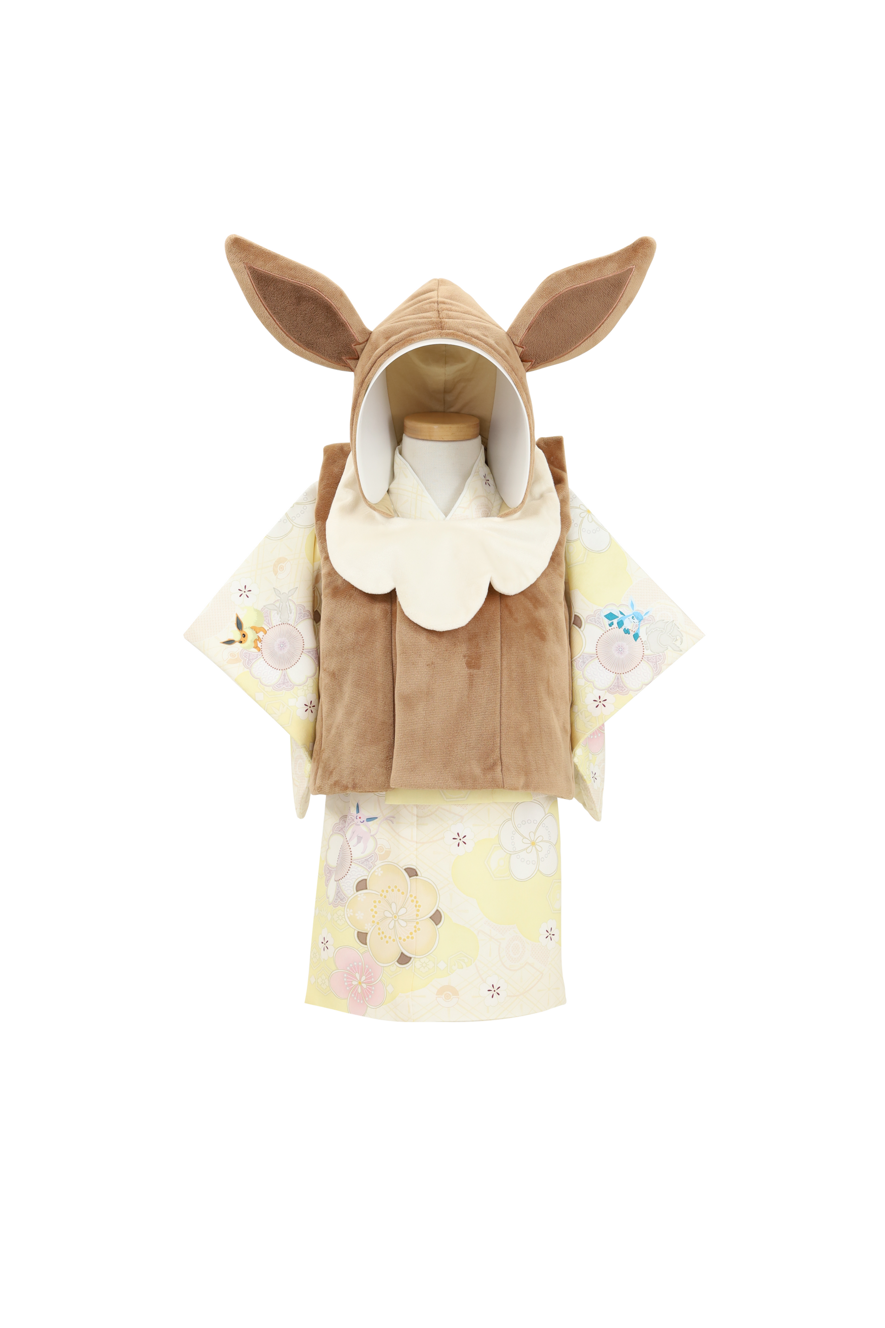 また、従来の被布の形にとらわれず、イーブイを表したフード付き被布に。背面には、イーブイの特徴である大きな尻尾をとりつけ、より一層着ぐるみ要素を取りこみました。
