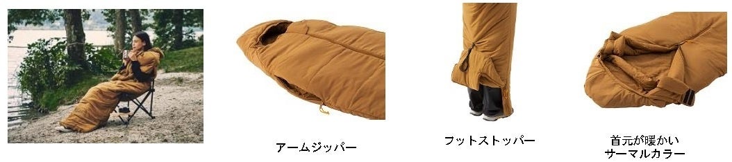 フード付きで頭部からの放熱を抑えコンパクトに収納できるマミー型の寝袋です。手足を出せるので携帯操作や着たままの移動にも便利です。移動時に寝袋を引きずらないようスソを固定するフットストッパー機能もあります。こちらの製品は、洗濯機で丸洗いも可能です。