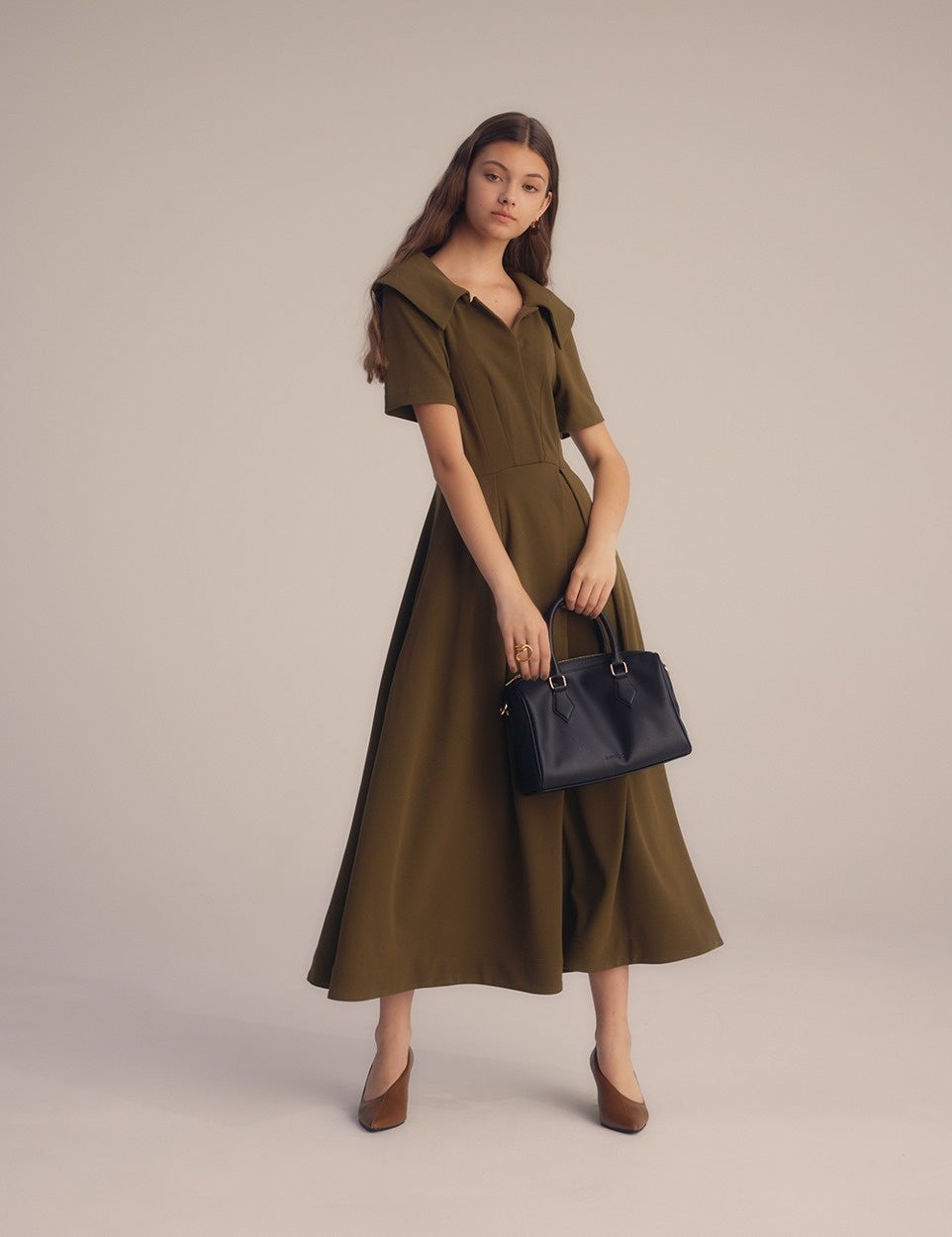 ■ Sailor volume dress (green/camel) ¥17,050(taxin)