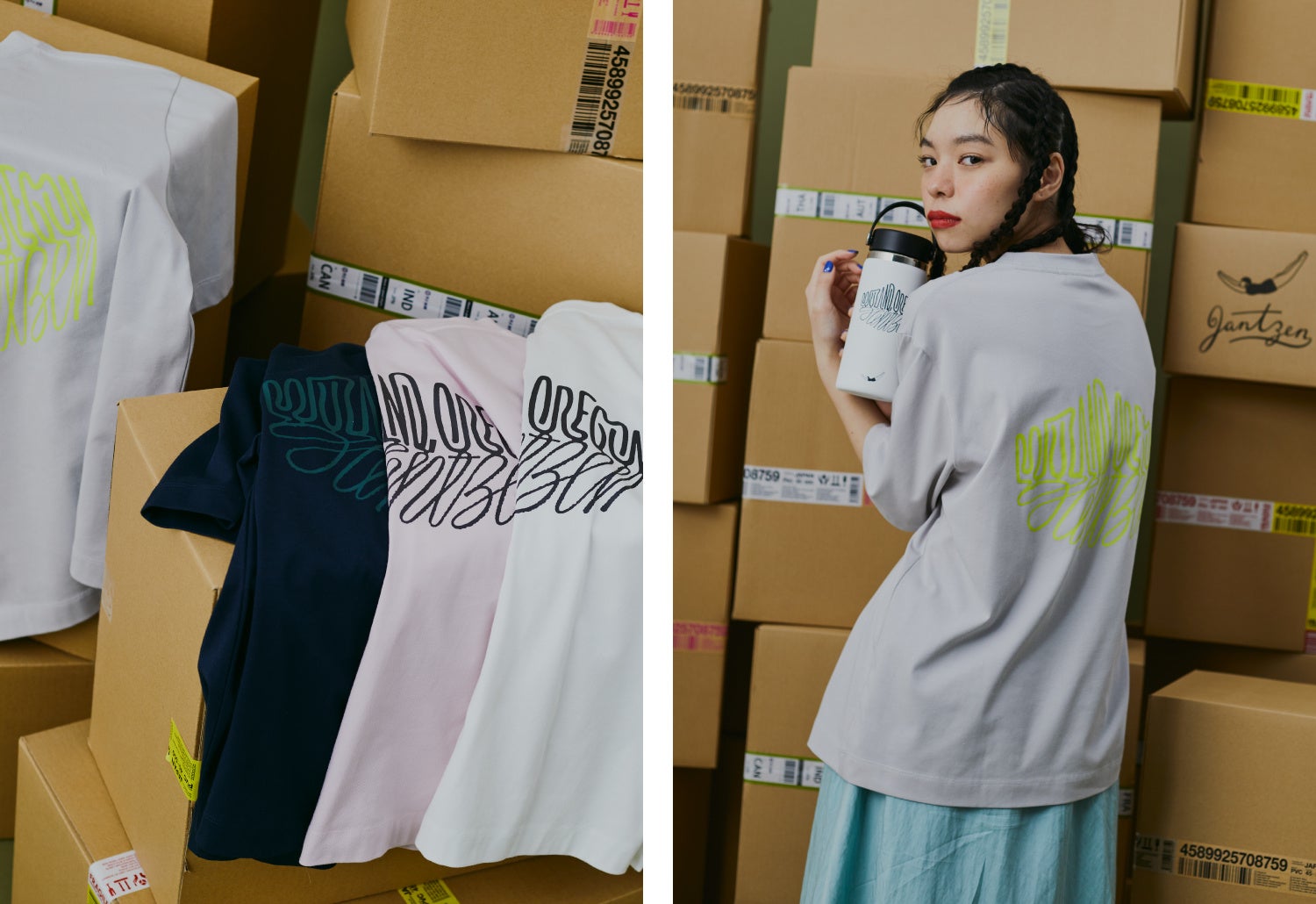 春夏シーズン、JANTZENの恒例イベントともなりつつある、クリエイター方とのコラボレーションTシャツフェア。25SSも様々なデザインを手掛ける2名の方とタッグを組み、全6種類のアイテムを4月16日(水)に発売いたします。こちらの記事でご紹介する方は、広報物やロゴのデザインを手掛けるなど、グラフィックデザイナーとして多方面で活躍されている三重野龍氏。文字が息をしているかのように形を操り、テーマに沿ってガラリと印象が変わるデザインが特徴的な三重野氏の作品。時にはキリリとクールに、時にはポップに、文字で作り出す雰囲気に圧倒されます。今回三重野氏にデザインいただいたTシャツはJANTZENが持つ雰囲気や、原点であるPORTLANDをテーマに表現いただいたもの。少しメンズライクなデザインが今夏の新しいコーディネートのスパイスになること間違いなしの一品です。